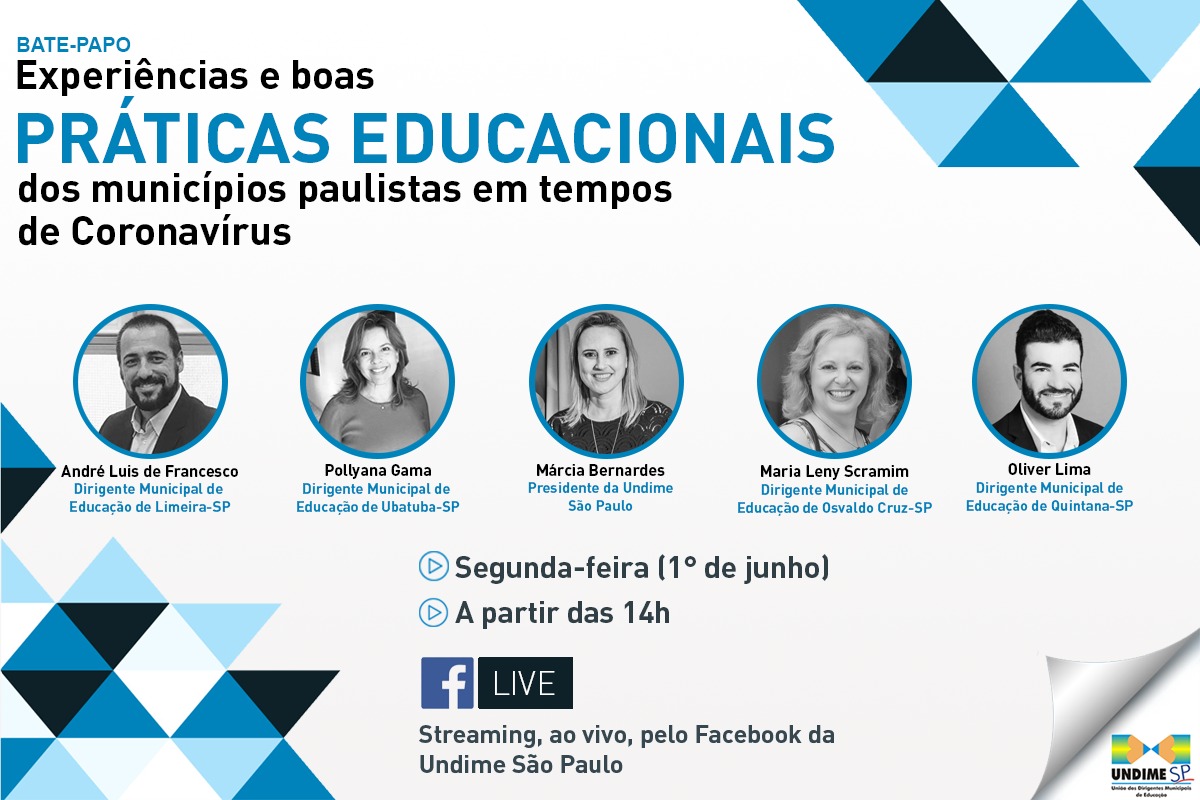 O bate-papo será transmitido pela página da Undime São Paulo, no Facebook. Para acompanhar ao vivo é só acessar o link: https://www.facebook.com/undimesaopaulo no horário e dia informados.
