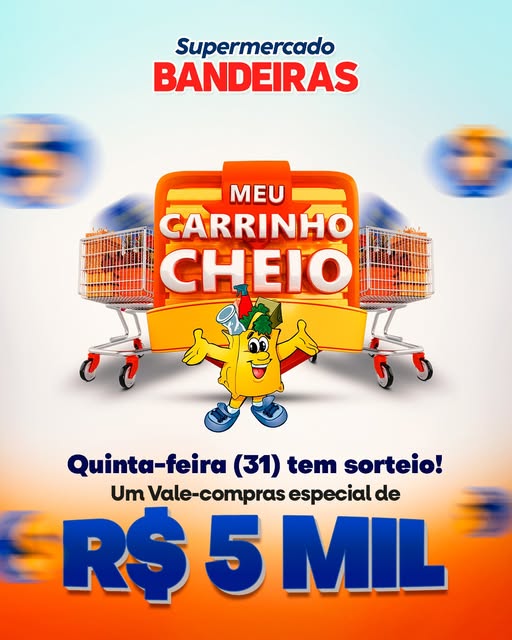 Supermercado Bandeiras realiza nesta quinta-feira, dia 31 de julho, o encerramento da sua promoção para o primeiro semestre de 2025, “Meu Carrinho Cheio”.