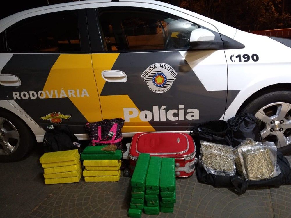 A Polícia Militar Rodoviária apreendeu mais de 28 quilos de drogas nesta segunda-feira (25). De acordo com a corporação, os entorpecentes estavam com três passageiros em um ônibus, que foi abordado no km 648 da Rodovia Raposo Tavares (SP-270), em Presidente Epitácio.