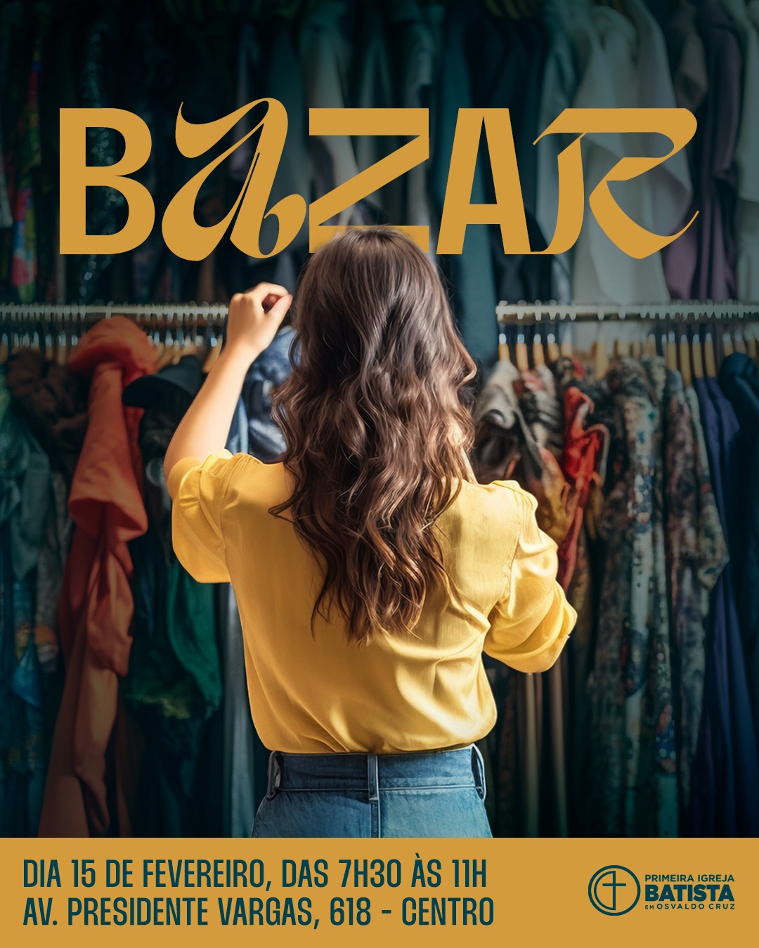 APrimeira Igreja Batista de Osvaldo Cruz realiza no sábado, 15 de fevereiro, das 7h30 às 11h, o primeiro Bazar Solidário de 2025.